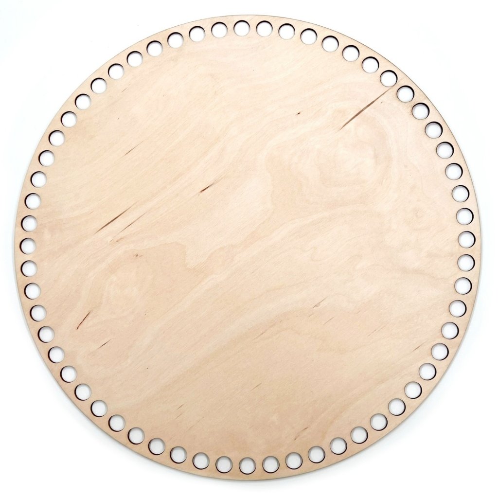 Překližkové dno z březového dřeva na výrobu háčkovaných košíků S VELKÝMI OTVORY PRO JUMBO 9 mm ŠŇŮRY, pohodlné háčkování s ideálními rozestupy otvorů.